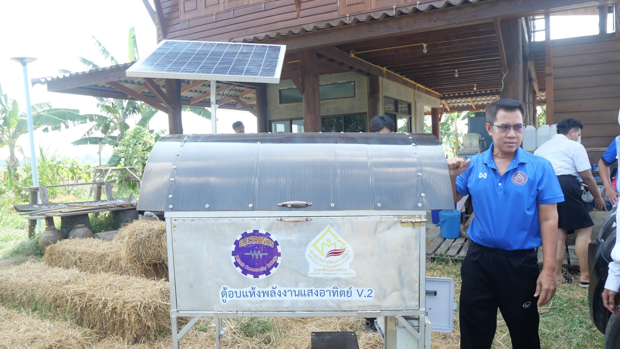 วันที่ 29 มีนาคม 2567 สาขางาน อิเล็กทรอนิกส์ ระดับ ปวส.2 วิทยาลัยชุมชนพิจิตร ทำการส่งมอบ นวัตกรรมสิ่งประดิษฐ์ สู่ชุมชน “ตู้อบแห้งพลังงานแสงอาทิตย์ V.2” ให้กับ คุณเสาวลักษณ์ สืบสมาน ตัวแทนวิสาหกิจแปลงสมุนไพร หมู่ 9 ตำบลท่าเสา อำเภอโพทะเล จังหวัดพิจิตร |