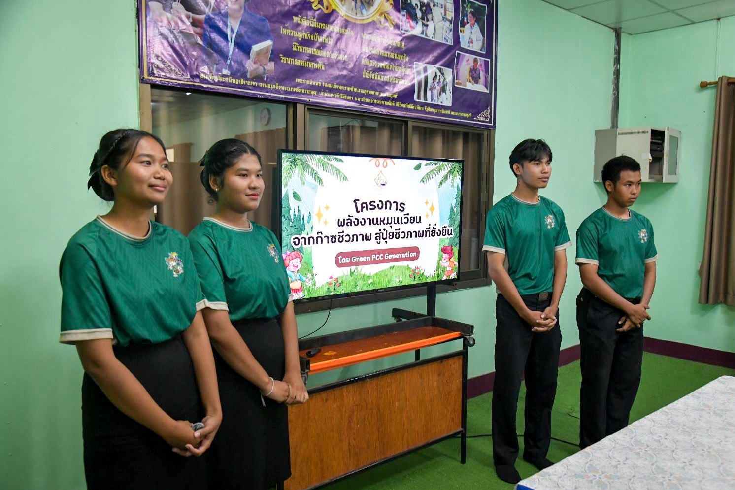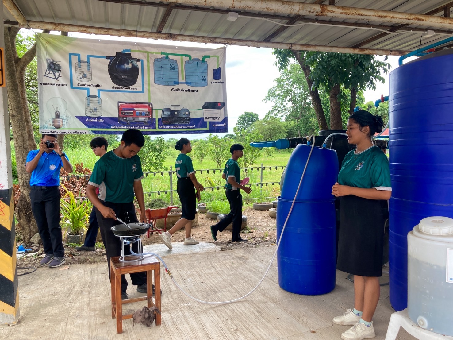 วันที่ 26 สิงหาคม 2568 นางพิชญดา หัศภาค รองเลขาธิการ กปร. พร้อมด้วยคณะกรรมการตัดสินการประกวดโครงการเยาวชนอาสาสานต่อพระราชดำริ ลงพื้นที่โครงการของเยาวชนทีม กรีน พีซีซี เจนเนอเรชัน (Green PCC Generation) วิทยาลัยชุมชนพิจิตร ซึ่งได้นำองค์ความรู้จากการศึกษาดูงานโครงการศึกษาวิจัยและพัฒนาสิ่งแวดล้อมแหลมผักเบี้ยอันเนื่องมาจากพระราชดำริ ในกิจกรรมค่ายเยาวชนรู้งานสืบสานพระราชดำริ มาพัฒนาต่อยอดนวัตกรรมถังหมักก๊าซชีวภาพ โดยนำน้ำล้นจากถังหมักและเศษอาหารมาผลิตเป็นปุ๋ยชีวภาพ ใช้ทดลองในแปลงเกษตรเพื่อลดการพึ่งพาปุ๋ยเคมี ขณะที่ก๊าซชีวภาพสามารถใช้ทดแทนพลังงานในครัวเรือน อาทิ การใช้หุงต้ม การผลิตกระแสไฟฟ้า ช่วยลดต้นทุนและเพิ่มความคุ้มค่าในการประกอบอาชีพเกษตรกรรม นอกจากนี้ ทีมเยาวชนได้จัดเวิร์กช็อป และถ่ายทอดความรู้ให้แก่นักเรียนและชุมชน เพื่อส่งเสริมการมีส่วนร่วมและขยายผลสู่การพัฒนาที่ยั่งยืน |